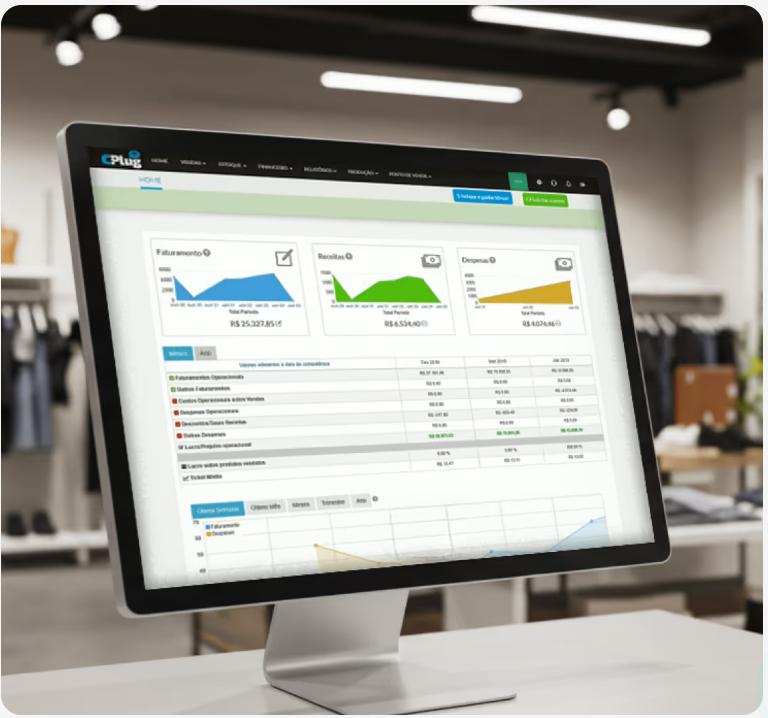 Visualize todas as áreas e tenha um controle completo sobre sua empresa com um ERP integrado. Utilizando o ERP da CPlug, você pode tomar decisões e traçar estratégias com mais rapidez e assertividade. Otimize sua eficiência ao centralizar a gestão de finanças, estoque, vendas e outras áreas em uma única ferramenta.